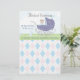 Um bebê novo e fofo continua apresentando um bebê em uma carruagem de bebê em vintage azul em um gramado, manchado com pássaros azuis e coelho azul, contra um céu azul pastel com nuvens brancas indefinidas. O nome da criança encontra-se no centro de topo, em letras decorativas grandes, e, por baixo e por baixo, em caracteres azuis, a data de nascimento e a hora de nascimento, a duração e o peso da criança. Uma manutenção perfeita para o novo menino. Tudo isso em um fundo azul, branco e rosa (diamante) argyle. Uma ideia de presente de excelente para novos pais.