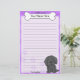 Diversão da loja Kawaii Newfoundland com um cartoon newf no canto inferior direito. A parte superior pode ser instantaneamente personalizada com o seu nome dentro do osso grande do cão. Borda e fundo de papel são roxos.