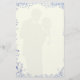 Elegante design de papelaria de casamento com um silouhette macio de recém-casados dançantes no fundo e uma borda decorativa floral. Vem em fundo branco ou um fundo azul claro com todos os produtos correspondentes do conjunto de casamento.