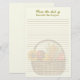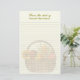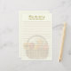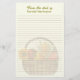 Papelaria temática de fazenda forrada. Desenho de cesta de legumes ao fundo com linhas para facilitar a composição de uma nota manuscrita. Cor bege com duas linhas de texto no topo. "Da mesa de - com nome" em letra cursiva e impressa.