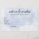 Um jogo de conselhos e desejos, um cartão de chá de panela com tema Cloud 9, com um fundo azul pastel com nuvens fofas, caligrafia moderna e tipografia simples, limpa e moderna. Itens correspondentes disponíveis.