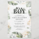 Garotos selvagens, calmos e elegantes, açari, convite para chás de fraldas de animais com girafa, efeito ouro e folhas verdes. Perfeito para convites de orçamento de chá de fraldas para rapazes