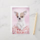 Um cachorrinho de Chihuahua de cor rosa com rosas