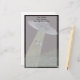Um lápis a cores de uma vaca infeliz sendo sequestrada por aliens em um disco voador enfeita este papel de carta personalizável!