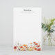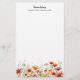 O papel de carta personalizado floral de aquarela apresenta margaridas e verde pintados de vermelho, branco e laranja. Personalize com seu nome e endereço (ou sua escolha de informações de contato, como email, site ou telefone).