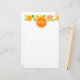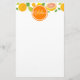 Papel de carta com um padrão de caracteres cor de laranja, limão, toranja e limão sorridentes com folhas verdes. A combinação de nome e monograma pode ser personalizada.
