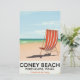 Coney Beach Porthcawl Wales travel poster with a deck chair on the sandy beach during the day. vintage style travel poster. Bus or coach British vacation print.