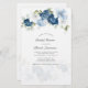 Personalize este cartão de convite de orçamento de chá de panela clicando no botão "Personalizar" acima. A carta apresenta um moderno e elegante chic com flores azuis empoeiradas, de cor branca, azul claro e verde-oliva. TIP: Excelente para festas surpresa, chás de fraldas, recepções de casamento e festas de aposentadoria.
