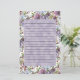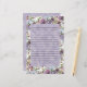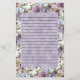 Ilegante forjou papelaria pessoal com lindas flores silvestres roxas e azuis e verde em fundo branco.