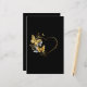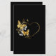 Dourada estrutura em forma de coração, decorada com ouro, joias e borboletas brancas sobre fundo preto.