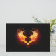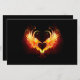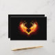 Coração de anjo com asas flamejantes em fundo preto.