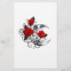 Contorno, lua da crista mecânica com engrenagens, decorada com rosas vermelhas com caules e folhas pretas em fundo branco. Steampunk