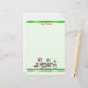Lindo papelaria de Natal para crianças com minha design de um boneco de neve e sua família segurando presentes de Natal com texto "Felizes Feriados" e terra decorativa verde.
