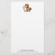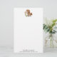 Papel de papelaria com uma ilustração adorável. Um pequeno pônei marrom comendo margaridas felizes.