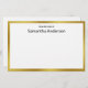 Da mesa de está perto do topo. Texto preto adicional para o seu nome está na próxima linha. Há uma borda elegante falsa (não em folha) dourada.