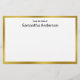 Da mesa de está perto do topo. Texto preto adicional para o seu nome está na próxima linha. Há uma borda dourada falsa (não folha) elegante.