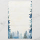 Este bonito papel de nota apresenta uma delicada pintura feita de aquarela, ilustrada por uma mão, de pinheiros com poeira de neve, de altura em relação a um céu azul suave de inverno. A cena serena de verduras azuis e vermelhos gelados e suavemente queda de flocos de neve evoca uma atmosfera serena e rústica de floresta de inverno. Ideal para escrevendo de letras, listas de tarefas, ou notas sazonais, esta design capta maravilhosamente o espírito pacífico e festivo da época de férias do congelando de inverno.