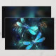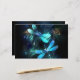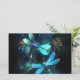 Duas libélulas transparentes, luminosas, turquesas, desenhadas artisticamente sobre fundo noturno, com algas e vagalumes luminescentes do lago. Dragonfly brilhante.