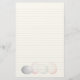 Duck pond, homesteader's double-sided stationery size 5.5 x 8.5 inches with ecru color background. Personalize this 80lb. weight, recycled paper with a name, or business at the top in dark green, printed font. Both sides are lined and contain a peaceful duck pond and farm image on the front, with a simple row of colorful eggs on the back. Use for personal or farm business correspondence. This paper can include envelopes as an option.