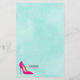 Papel de carta personalizado com o seu nome. Projetado com um calçado stiletto cor-de-rosa quente. Colocado sobre um fundo de aquarela verde da menta. Chic e glamouroso.