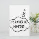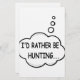 Eu preferencialmente caçando. Bolha de cartoon em preto e branco com citação engraçada. Uma design para pessoas que adoram caçar.