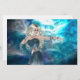 Céu azul etéreo - Lua cheio brilhando através das nuvens - Bela deusa Lua loira, Sky Siren apontando para seu belo carregando de pomba branca um rosa solteiro