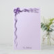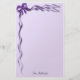 Papel de carta com fitas roxas e arcos cortados na borda superior e esquerda sobre fundo de gradiente violeta. Personalize-o com o texto ou remova-o.