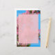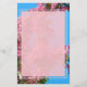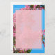Bonito papelaria de verão com flor de árvore rosa e céu azul.