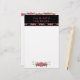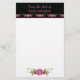 Bonito papel timbrado de papel de carta, feito em branco, com um cabeçalho preto que tem uma borda de flores rosa e uma flor rosa, decorando o fundo, do bloco. Personalize o texto cor-de-rosa no topo da plataforma, para você mesmo ou como uma boa ideia de presente para ela.