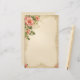 Lindas flores cor-de-rosa se aglomeram nos cantos superior e inferior, conectadas com uma moldura decorativa, sobre fundo de marfim. Muito elegante papelaria para a sua correspondência.