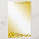 Uma área de gradiente amarelo em papel de papelaria com uma pequena fotografia de flores silvestres amarelas com fitas adicionadas centradas no fundo e uma design no canto superior direito semelhante. Use-o como modelo para adicionar um nome ou clique no botão "Personalizar!" para personalizar o estilo, o tamanho e a cor do texto.