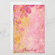 Design de papel de papelaria floral romântico personalizado, com flores rosa estilizadas, luzes de boque, faíscas e pinturas amarelas. O texto é totalmente personalizável.