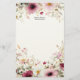 Lindas flores silvestres rosa e carmesim adornam a parte superior e inferior deste papel de papelaria. Personalize-o com duas ou mais linhas de texto para uso comercial ou pessoal.