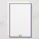 Folha de papelaria mostrada no white paper básico com bordas roxas, borda interior de cinzas mais finas; e uma coroa de rainhas de concurso com seu nome/data personalizado, etc. na parte inferior da página. Personalize esta folha de papel e personalize o seu nome; escolha a escolha do papel e a cor também.