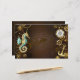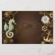 Fundo de madeira castanho com fundo marinho, cordilheira mecânica, volante antigo, âncora de ouro e diversas engrenagens de ouro e latão. Estilo Steampunk.