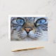 Este design apresenta uma imagem adorável de um gato olhando determinadamente para a câmera. Tem uma bela casaco de pelo.