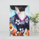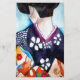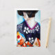 com design de arte original de pintura aquosa de Geisha Japonês em azul escuro intricado quimono laranja detalhado com fundo azul-céu. Brilhante e colorida, inspirada pela arte oriental e asiática, esta bela senhora vem da região de Kyoto do Japão.