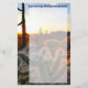 O sol se põe magnificamente sobre cactos no deserto da Arizona na natureza da superstição. Impresso em papel de papelaria para você compartilhar seu amor pelo sudoeste com seus amigos. Você pode manter o texto como ele está ou personalizá-lo de acordo com o seu próprio gosto usando os vários estilos e cores de fontes do Zazzle. Esta foto foi tirada durante uma caminhada na Trilha do Massacre na Selvagem da Superstição. Chegar a esta trilha é bastante fácil. A entrada é apenas um pouco mais abaixo de uma estrada de terra à esquerda que leva ao Primeiro Trilho d'Água. Esta estrada fica na Rota 88, a Trilha Apache, logo após a entrada do Parque Estadual do Holandês Perdido. A Selvagem de Superstição está carregada de milhas com trilhas que vão de fácil a difícil. Este design pode ser transferido para outro produto. Por favor, não hesite em contactar-me se precisar de ajuda, e ficarei muito feliz em ajudá-lo. Direitos autorais originais de 2016 por Karen Cofsense.