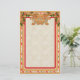 Gingerpão branco, homem e biscoitos femininos estão segurando uma placa com texto esperando que você se personalize. A fronteira é pão de gengibre e tem um depósito de cana doce. Holly acentua os cantos. A área central é ligeiramente texturizada com flocos de neve e árvores de Natal estilizadas. Papel de carta de Feriado para um toque único.