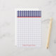 Papel de carta com um fundo de gingham azul com fundo vermelho. Personalize com seu nome na parte inferior.