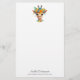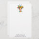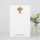 Papel de papelaria com uma ilustração de aquarela esbranquiçada apresentando uma face de girafa vestindo uma bonito coroa floral primavera. Colorida e fofa.