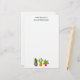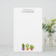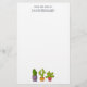 Papel de papelaria com uma ilustração esbranquiçada com 3 cactos felizes sentados em seus próprios potes de flores. Cada um deles tem suas próprias expressões únicas sorrindo e parecendo feliz.
