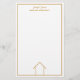 Essa papelaria moderna de corretor é simples e elegante com seu nome e informações da empresa. Ela apresenta um desenho de linha ouro e branco minimalista e sofisticado de uma casa. Use essa papelaria contemporânea para correspondência de imóveis para clientes e outros agentes imobiliários.