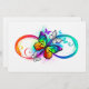 Multicor, brilho, símbolo de infinidade com arco-íris, monarca de borboleta detalhada. Borboleta-arco-íris. Arco-íris infinito.