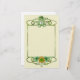 Doces artigos de papelaria com tema irlandês apresentam um fundo creme ligeiramente texturizado com uma fronteira verde graciosamente girada. Urso de pelúcia irlandês no chapéu e pote de ouro com sotaques de Shamrock.