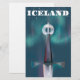 Islândia Espada medieval sob os nortes à noite de poster de viagens.