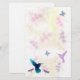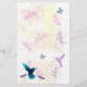 Os pastels delicados formam o fundo destes artigos de papelaria, com colibris, borboletas, e libélulas no primeiro plano. Um colibri azul brilhante no canto de inferior esquerdo enfrenta sua assinatura.