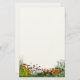 Lindas flores florescentes enquadram o fundo de sua papelaria. .