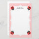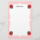 Material de escrita com um joaninha bonito com corações pretos no lugar dos pontos pretos tradicionais. Os pontos brancos e os corações cor-de-rosa modelam como o fundo. Design adorável e feminino para meninas. Personalize com nome da criança.