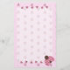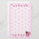 Um teste padrão de insetos cor-de-rosa e marrons adoráveis da senhora tem uma luz - fundo cor-de-rosa. Um joaninha mais grande está no canto mais baixo, quando a parte superior e a parte inferior tiverem uma fuga dos joaninhas menores que zumbem perto.